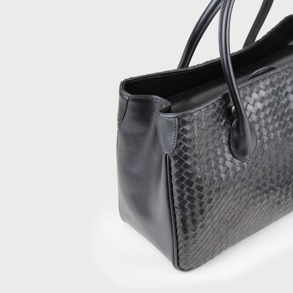 - Borsa a mano in pelle intrecciata e liscia
